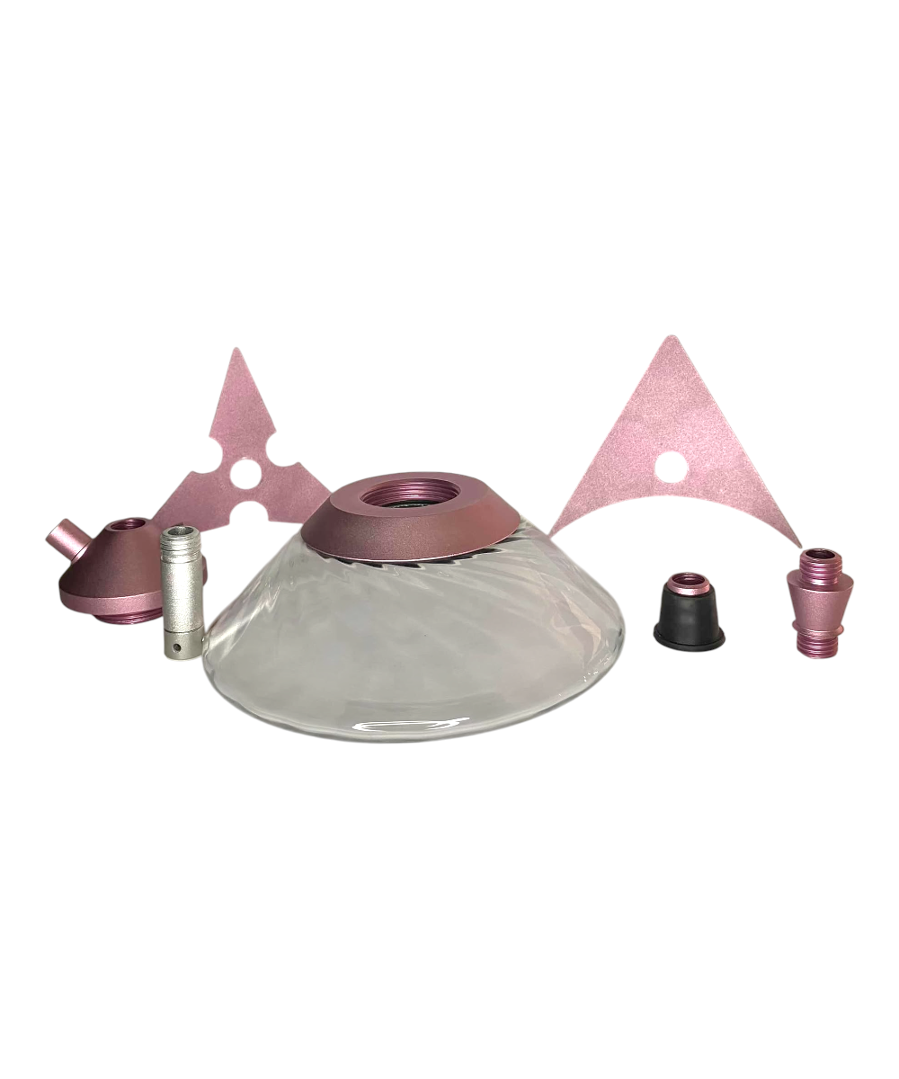 - Impacto Visual: A cor Rose Gold (rosa metálico) é o grande destaque visual. Ela se harmoniza perfeitamente com o design angular do stem, conferindo um ar de sofisticação e modernidade. Essa cor eleva o narguilé a um nível de objeto de design.